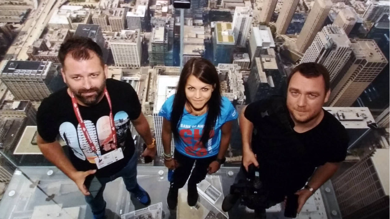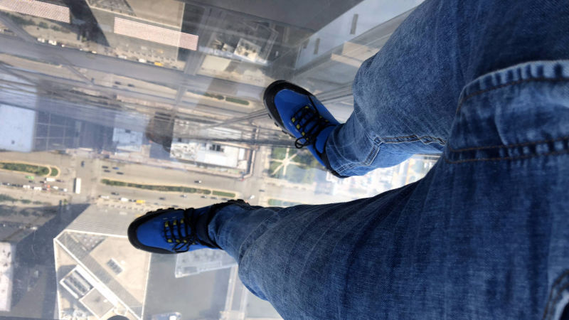 A Willis (Sears) Tower tetején egy üvegerkélyen