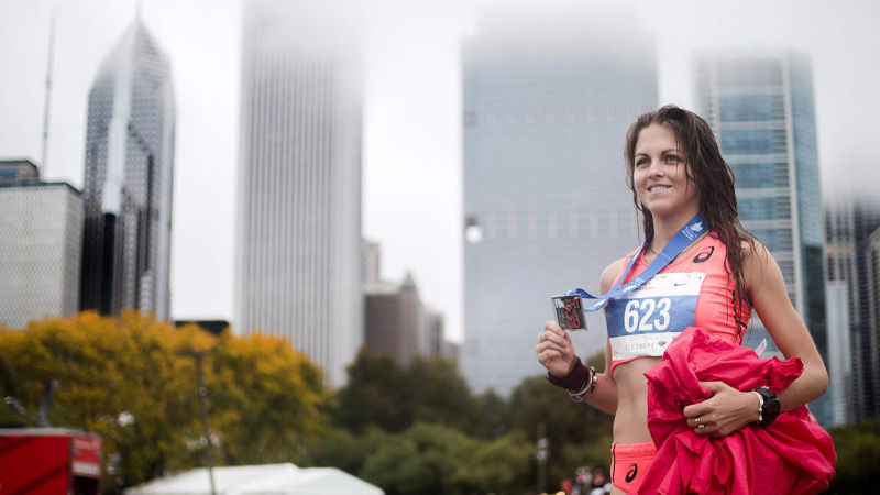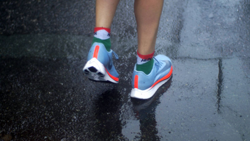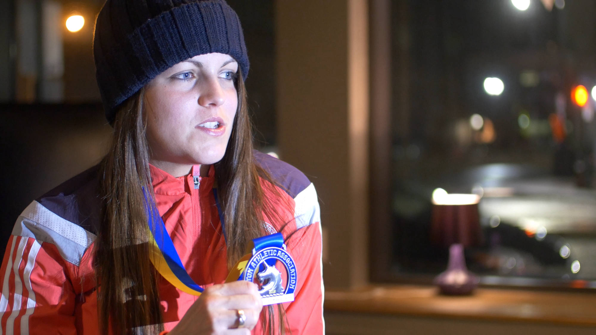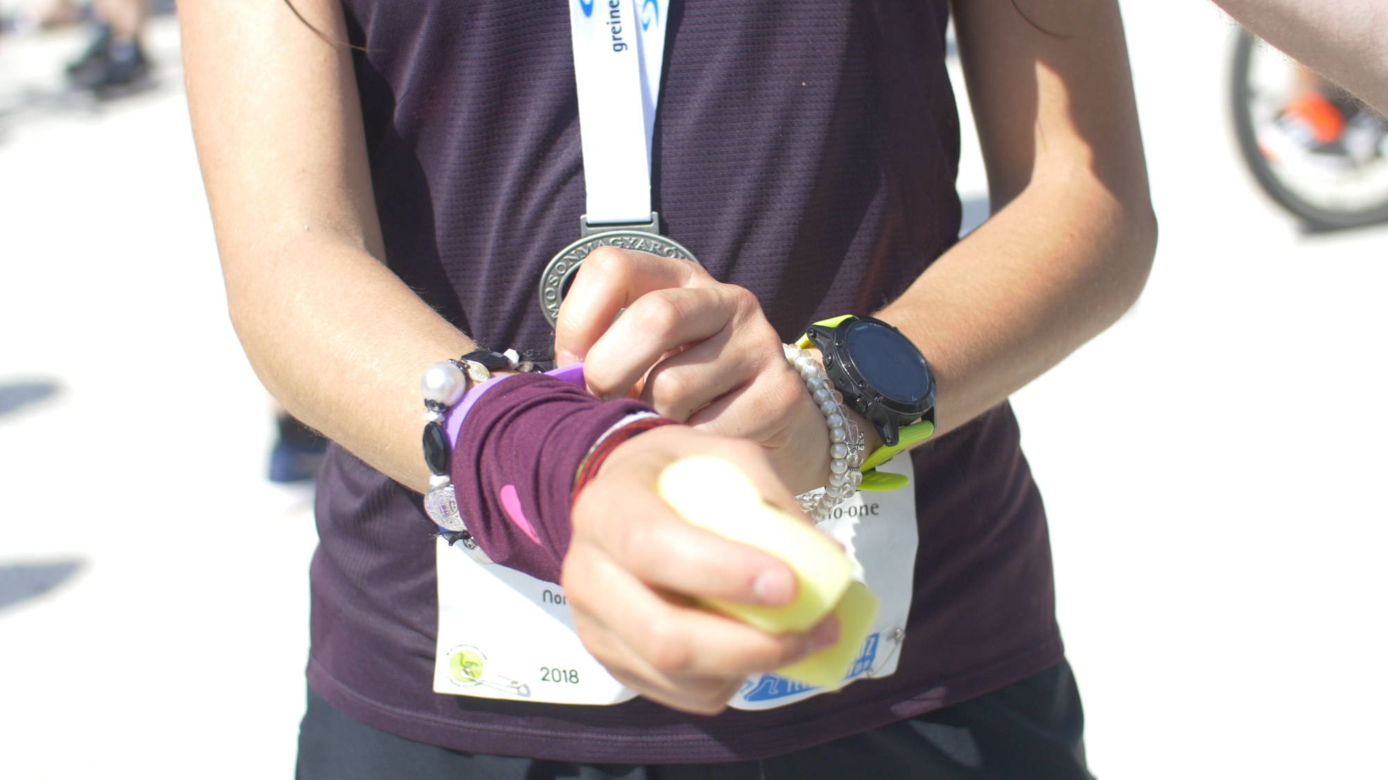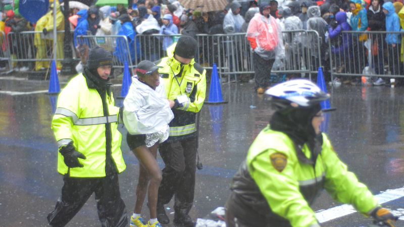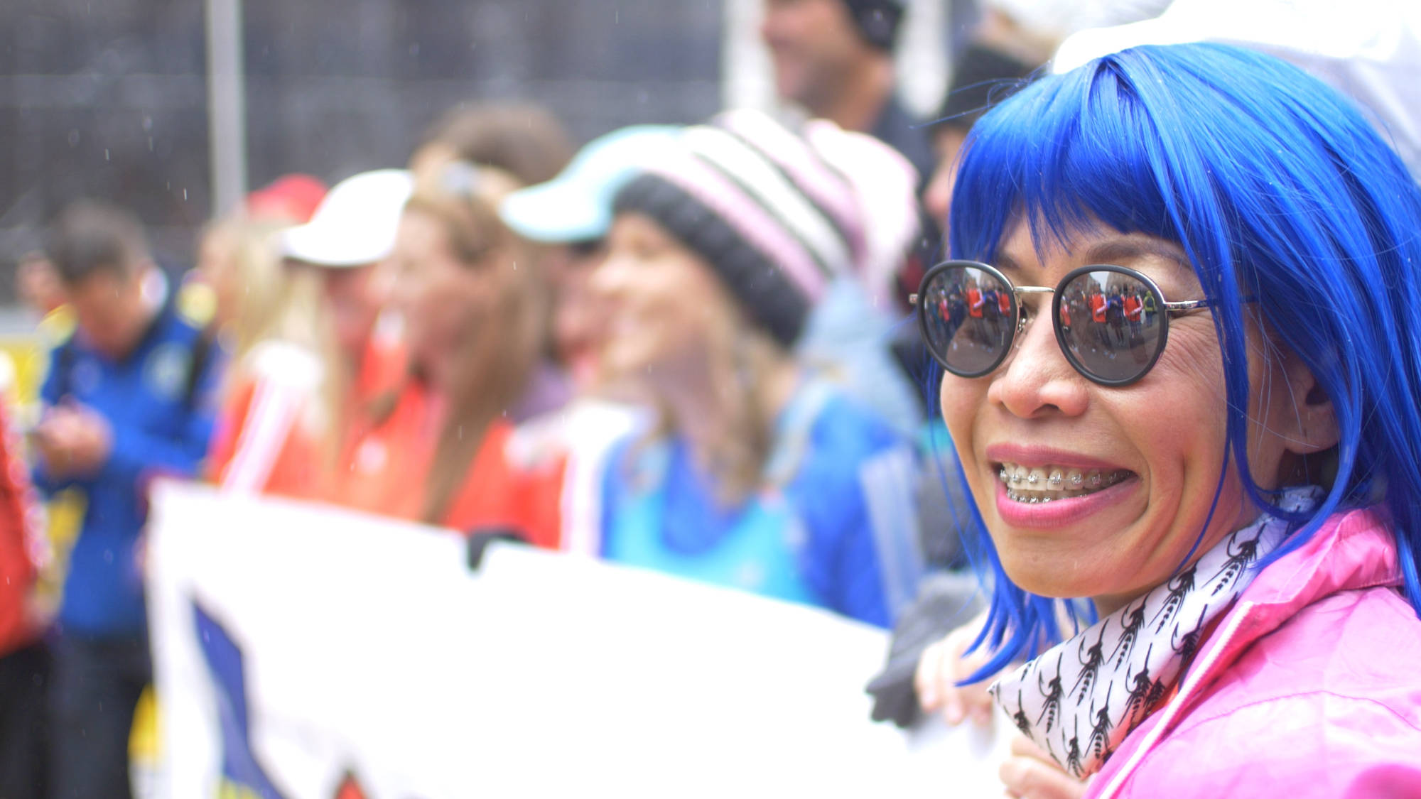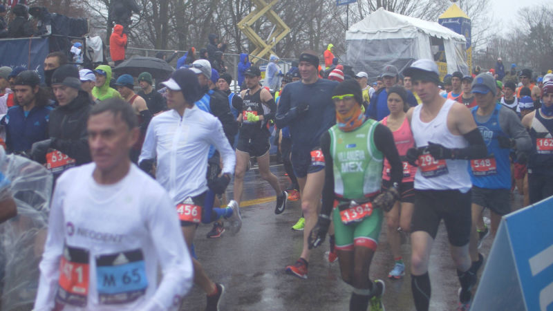Szabó Nóri célba érkezése a kíméletlen időben megtartott Boston Marathonon 2018-ban. A világ legnehezebb maratonján orkán erejű széllel szemben, szakadó havasesőben, +2 fokban. Hihetetlen szép eredménnyel ért célba a körülményekhez képest rekord idő alatt.