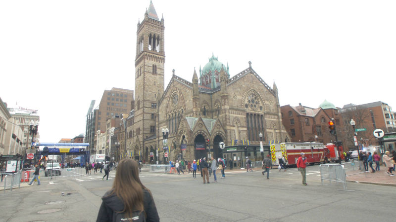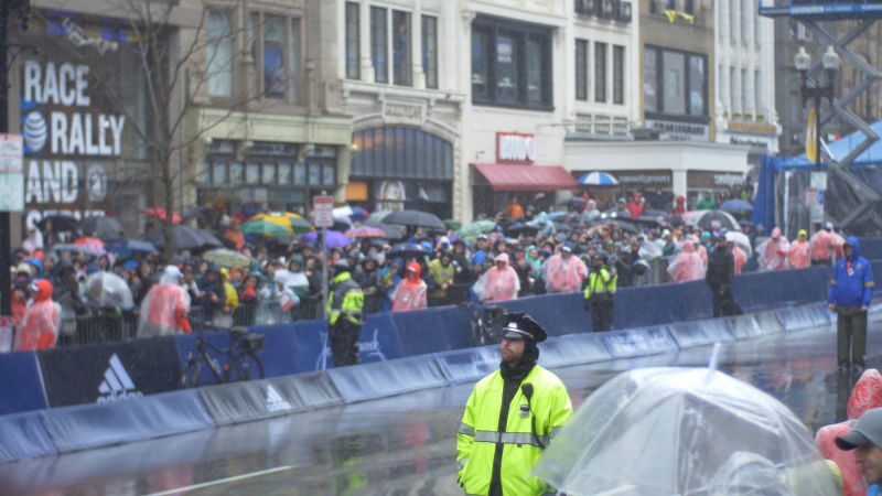Nézők a célnál. A rendőr mögötti részen robbantottak 2013-ban.